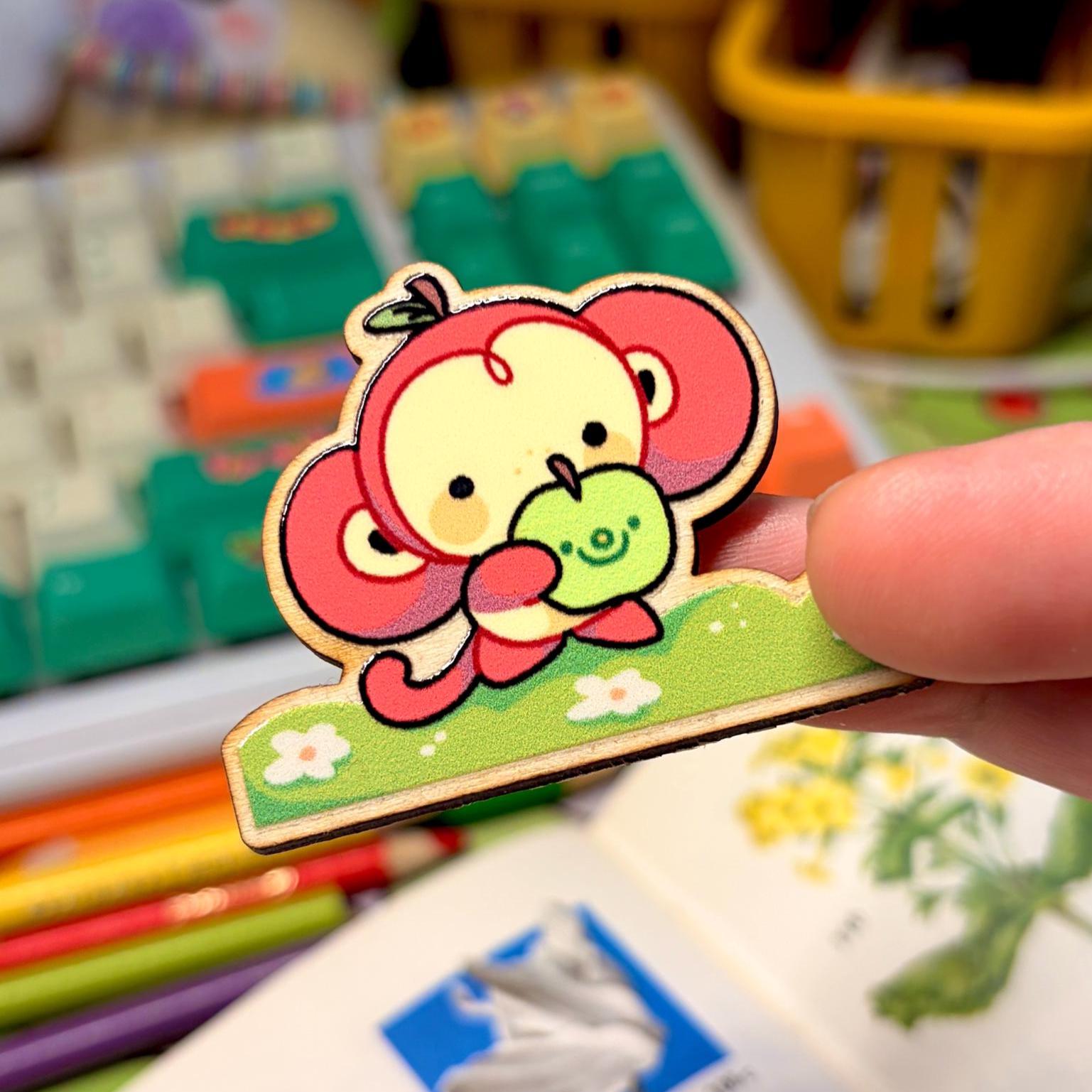 Apple Monkey Wooden Pin